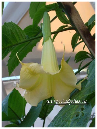 Выращивание бругмансии (Brugmansia): Для успешного роста и цветения бругмансиям нужен свежий воздух. Бругмансии любят перепады дневной и ночной температур. Помещение, где находится растение, нужно регулярно проветривать. Однако не рекомендуется размещать обильно цветущие бругмансии в небольших или плохо проветриваемых помещениях, т.к. возможны сильные головные боли и нарушение сна.