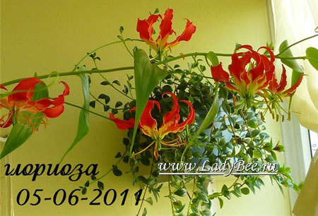 Выращивание глориозы (Gloriosa): Глориозу выращивают в горшках дома, в оранжереях или в саду в открытом грунте. Цветет глориоза летом и осенью. После цветения и отсыхания цветоносов полив сокращают и убирают горшки или просушенные клубни в прохладное место (8-10 градусов С) до посадки на следующий год.