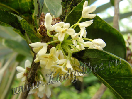 К роду Османтус (Osmanthus) принадлежит около 15 видов вечнозеленых устойчивых кустарников и деревьев медленного роста, которые достигают в высоту 5 м и очень ценятся за декоративное цветение и листву. Для них характерны супротивные кожистые цельные листья и трубчатые мелкие белые ароматные цветки в метелках. Плод - яйцевидная костянка, внутри содержится орешек.