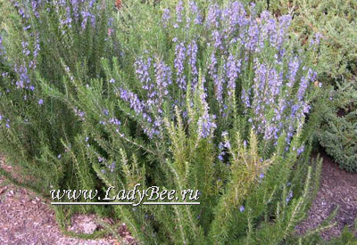 Род Розмарин (Rosmarinus) - это невысокие вечнозеленые кустарники с разветвленными побегами. Узкие линейные листья темно-зеленые с верхней стороны и беловатые - с обратной. Голубые двугубые цветки собраны в мутовки, зацветают в феврале и продолжают распускаться иногда до первых холодов. Растения нельзя назвать зимостойкими, но в защищенном, укрытом от холодов месте они выживают и в условиях холодного климата.