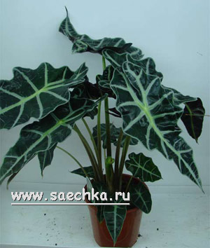 Род Алоказия (Alocasia) насчитывает до 70 видов травянистых корневищных многолетних вечнозеленых растений. Некоторые виды вырастают до 2-х метров. Цветут только взрослые растения, не моложе 3-4 лет.