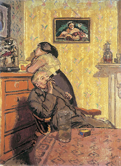 С анализами картин дело обстоит еще хуже. В литературном произведении есть слова, и то каждый может интерпретировать их по-своему, в картине же нет и слов, есть только визуализированный замерший момент. И "проанализировать" картину нашему умнику еще проще. Берешь картину (желательно, чтобы автора уже не было в живых, иначе он может оспаривать твои слова), выдумываешь о ней что угодной, подкрепляешь свои выдумки косвенными доказательствами, добавляешь терминов - вот и все, анализ картины готов! Вот, например, картина Сикерта "Скука". В ее описании говорится, что чувства этих двух людей давно остыли, а может быть, и остывать-то было нечему.