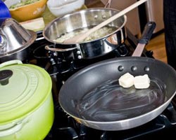 Самое главное – ни в коем случае не пользоваться для мытья посуды с тефлоновым покрытием металлическими мочалками или абразивными средствами. Во время приготовления пищи нужно использовать деревянные лопаточки и ложки, а еще лучше, если эти приборы будут изготовлены из специального пластика. Нои это правило, скорее всего, выучили все современные хозяйки, а вот то, что тефлоновую посуду нельзя сильно нагревать знают единицы. Если вы хотите, чтобы тефлон служил вам верой и правдой как можно дольше ставьте его на маленький или средний огонь. Утварь с поврежденным тефлоновым покрытием нужно без сожаления выкидывать. Готовить в поцарапанной кастрюле или сковороде опасно, так как в пищу при этом поступает ядовитая кислота.