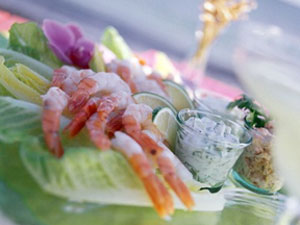 Обратите внимание на морепродукты, они низкокалорийные, но отлично смотрятся на праздничном столе! Нехитрые канапе с креветками, свежими огурцами, сливочным сыром и красной икрой, послужат красивой и изысканной закуской.